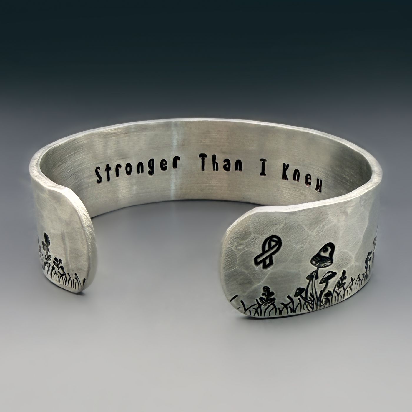 The inside can be personalized with a phrase such as: Stronger than I knew or a short message that speaks to your own journey.