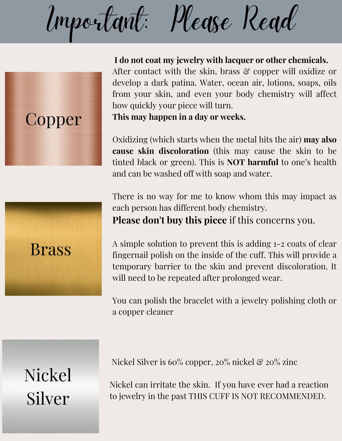 I personally hand-stamp my pieces. Hand Stamping is different from a machine engraving process. Each letter, number and symbol is created using individual stamping tools that are hammered into the metal.