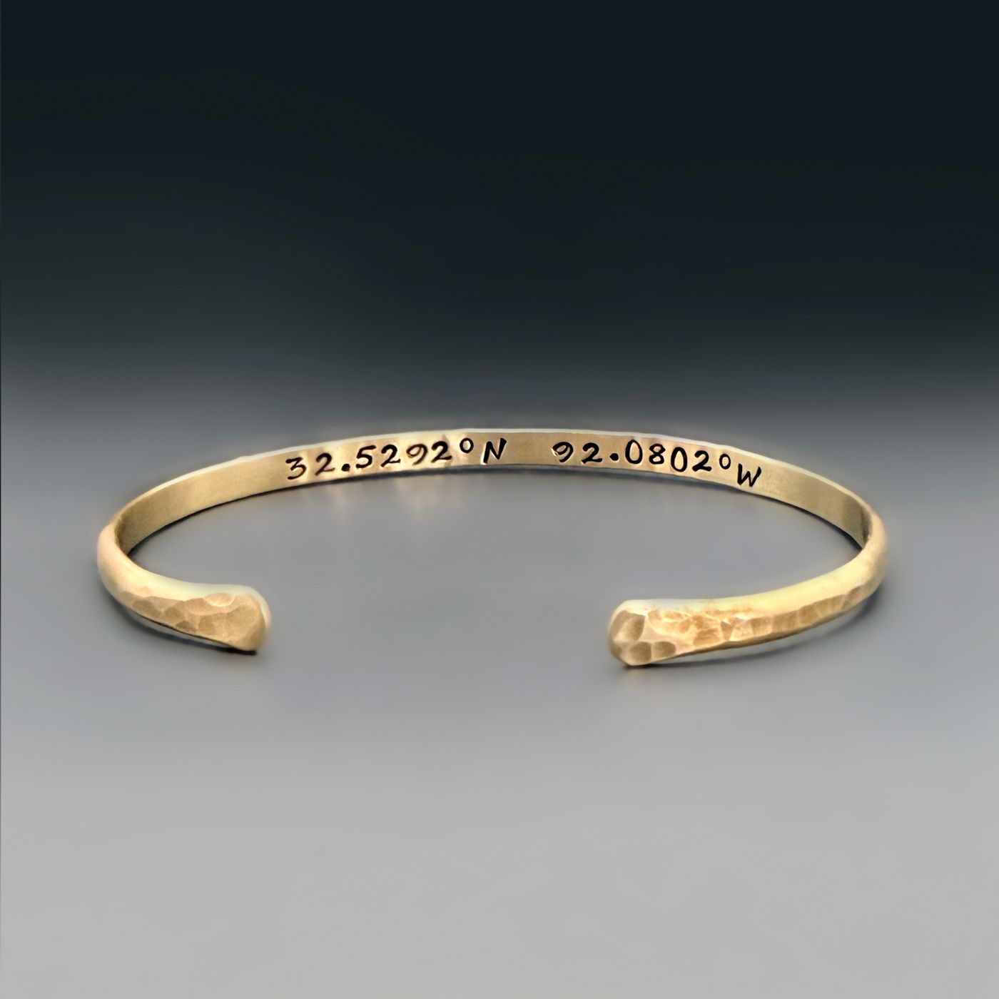 This Longitude & Latitude Stacking Cuff turns your most meaningful coordinates into a beautifully subtle everyday reminder of the places that shape your story.Whether it is where you met your person, where you grew up, the spot you said "yes," or any place that lives forever in your heart, we will hand-stamp the exact longitude and latitude for you.