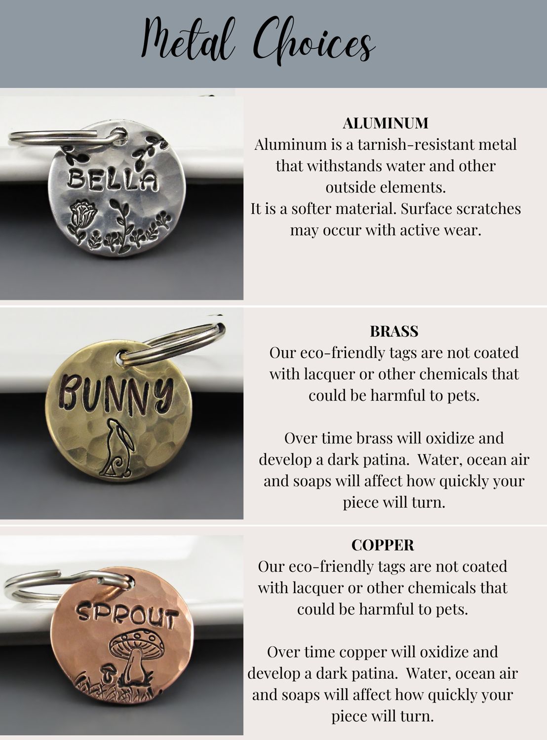 Hand Stamped Personalized Brass Copper or Aluminum Flower Garden Pet ID Dog Tag