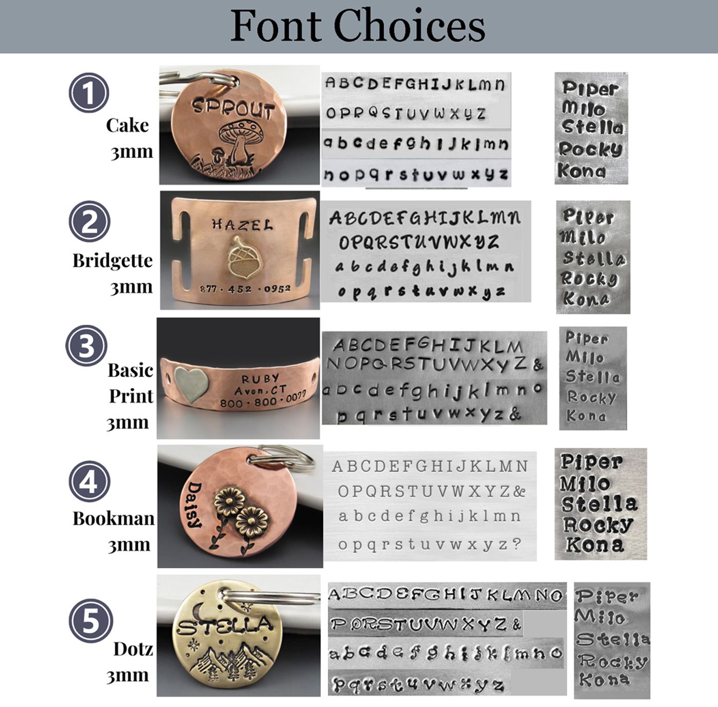 These cuffs are handmade. They will NOT have the precision of machine engraving. I cannot create custom images or use fonts other than the ones shown in the product photos.