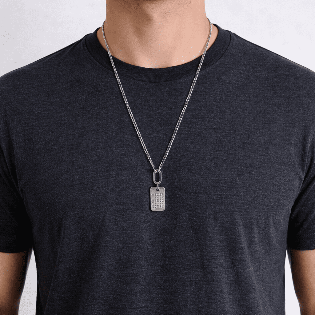 This personalized necklace is a timeless way to honor a moment that changed everything.Each rectangular pewter pendant is hand-stamped with names, dates, or inspirational words, allowing you to highlight meaningful events such as a wedding day, anniversary, birth date, adoption day, or a memorial moment.
