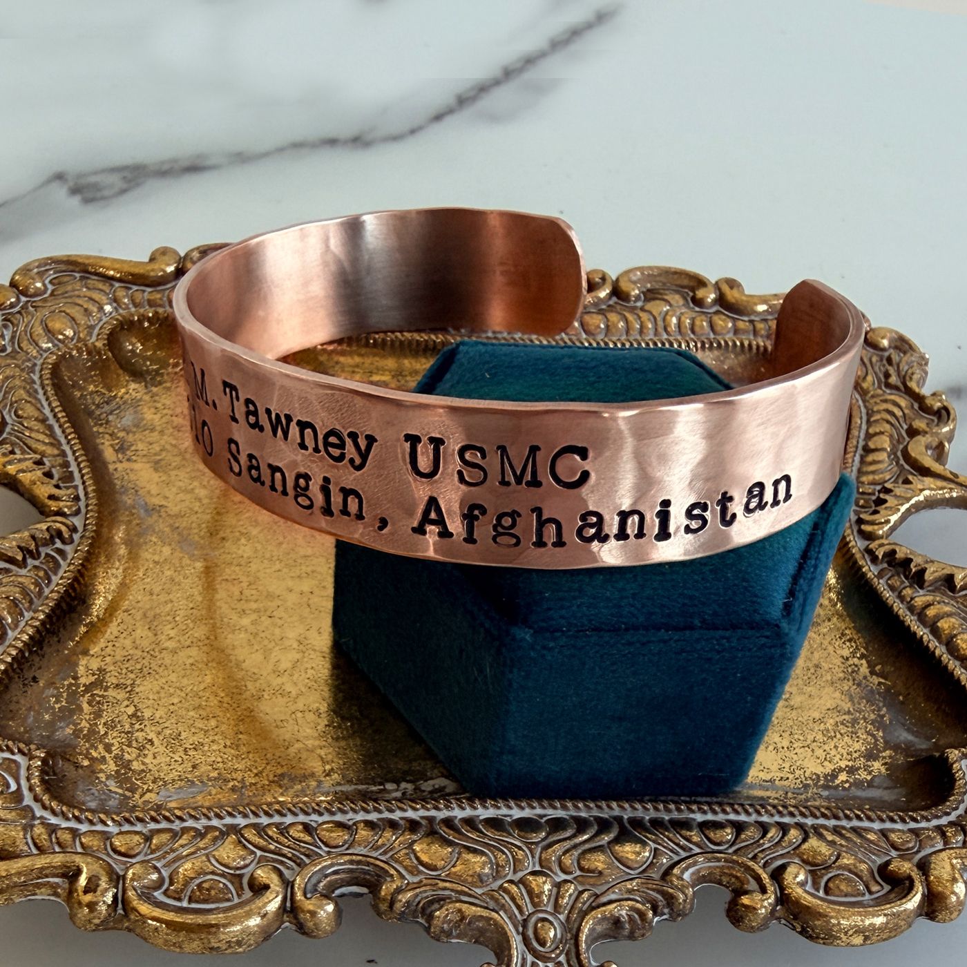 Men's 1/2 inch wide Personalized Hammered Copper Cuff