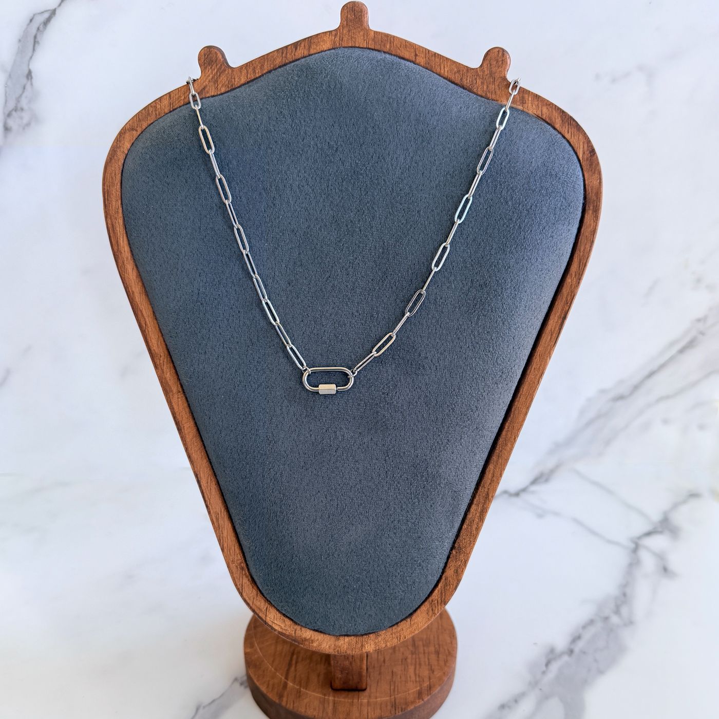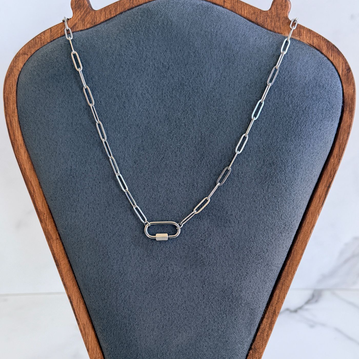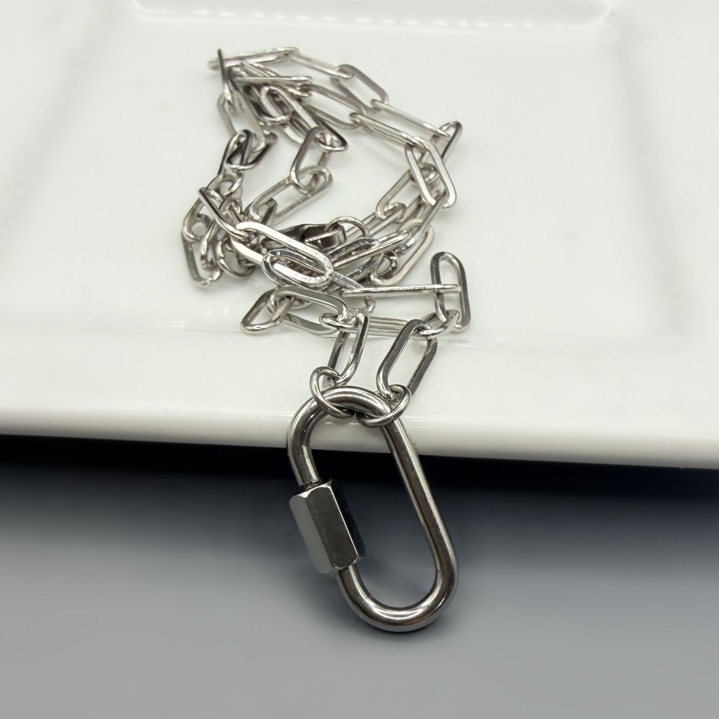 Paperclip Chain Necklace with Mini Carabiner Clasp | Stainless Steel