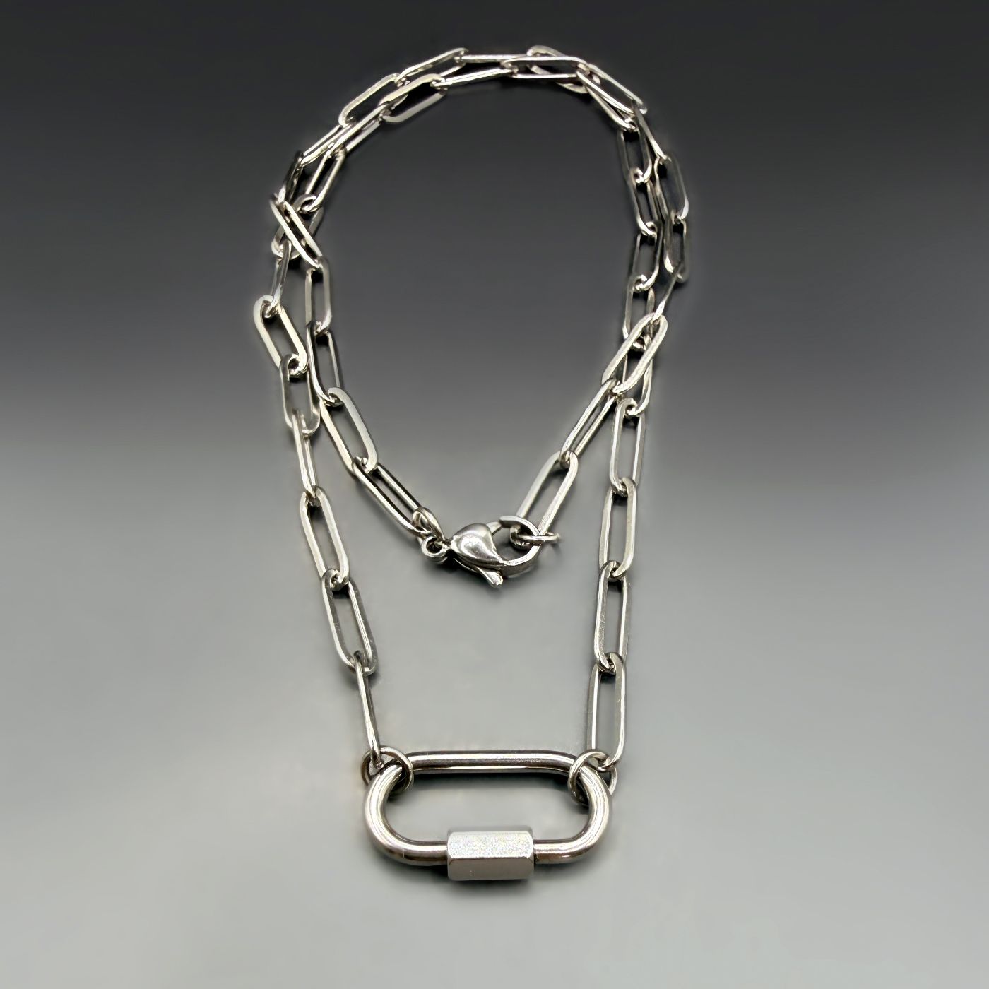 Paperclip Chain Necklace with Carabiner Clasp | Stainless Steel