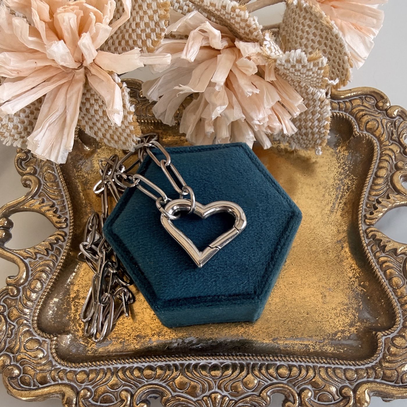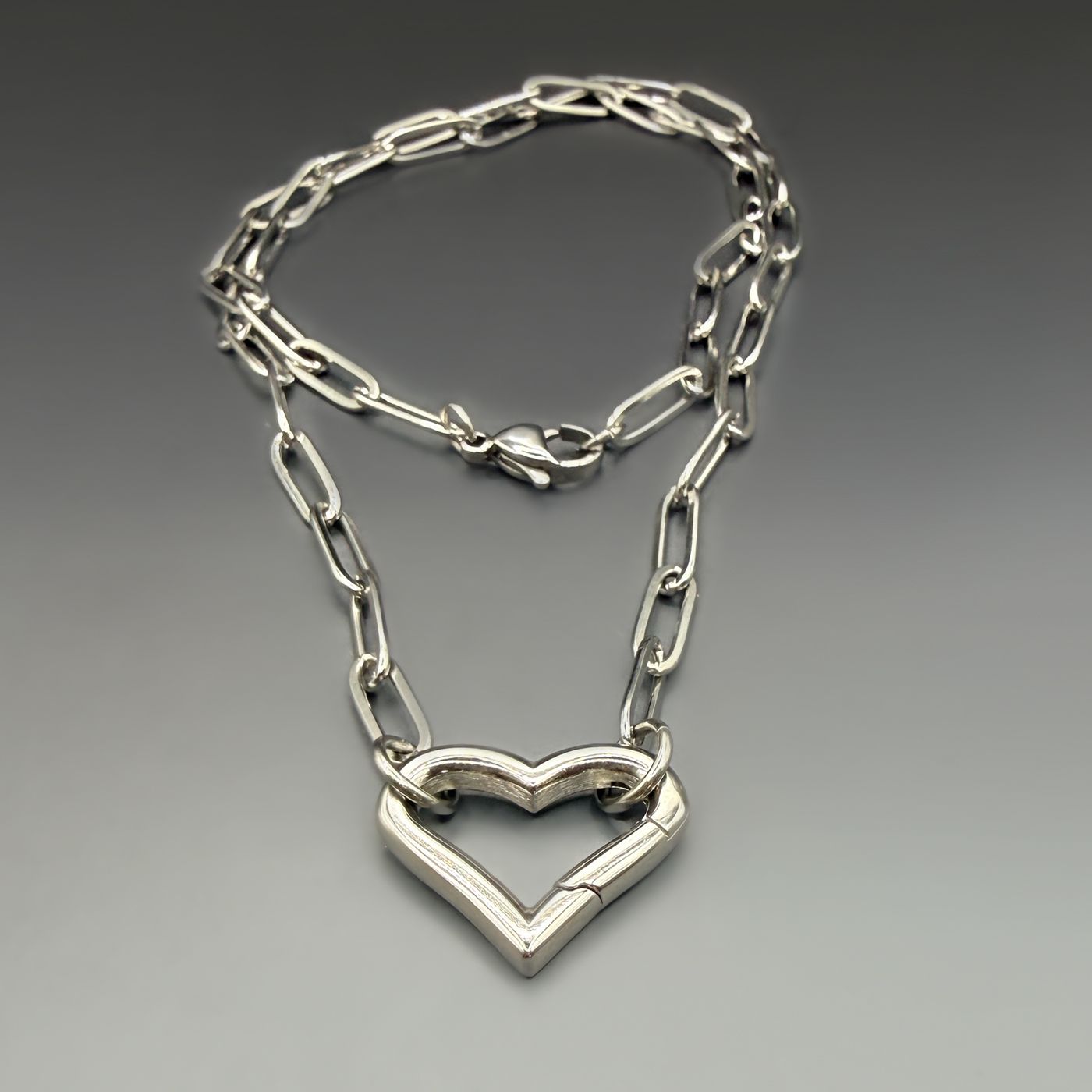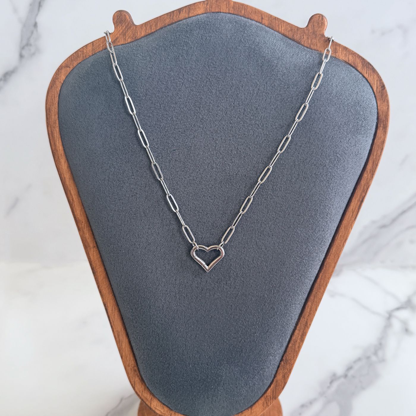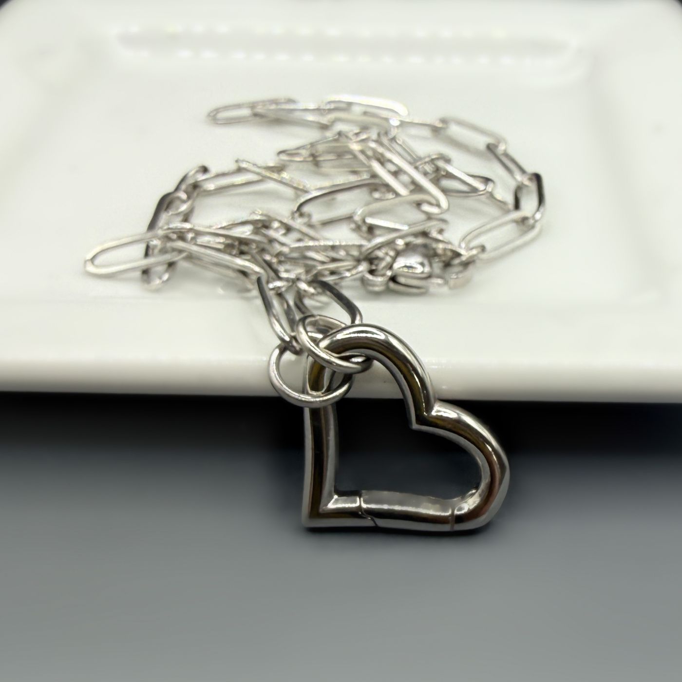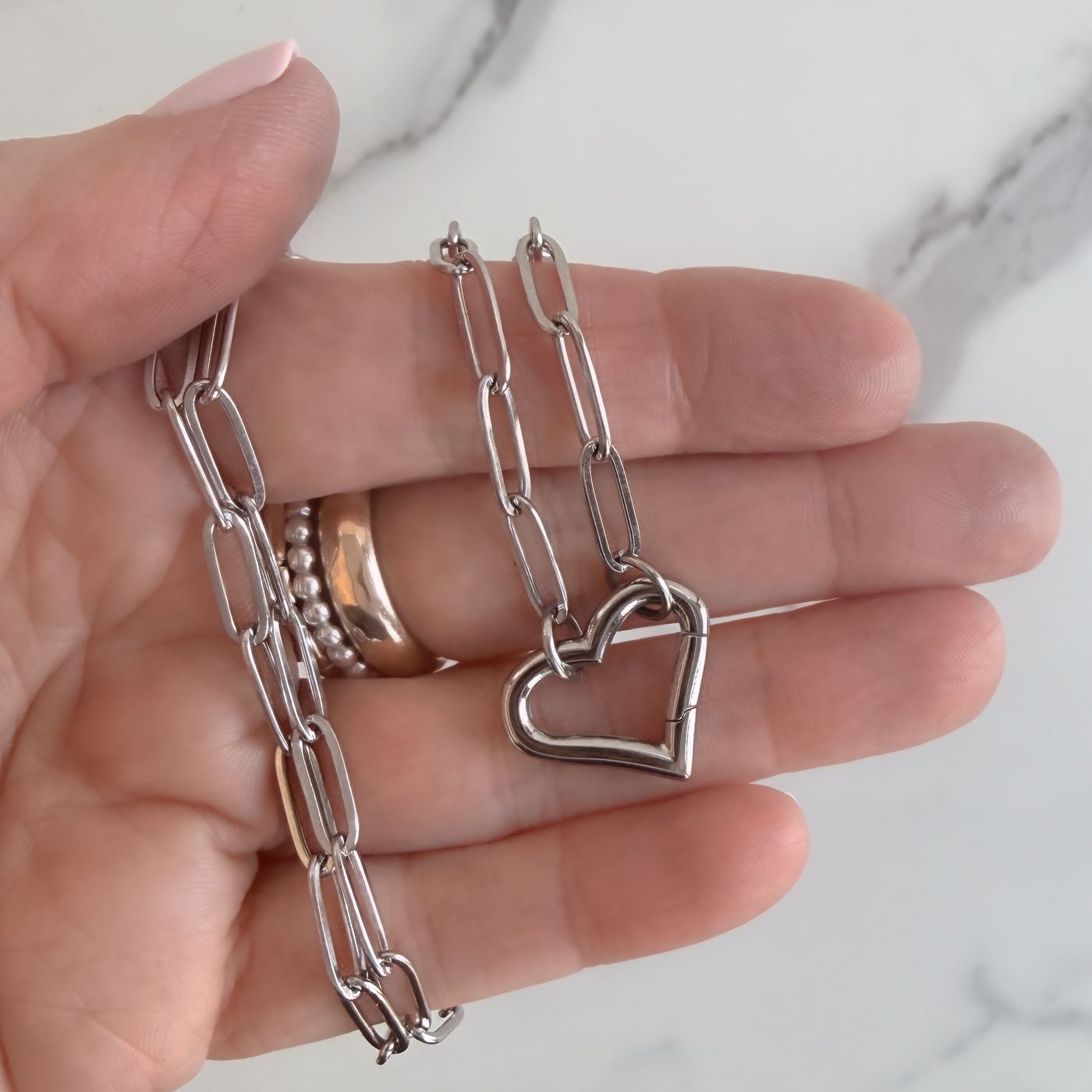Paperclip Chain Necklace with Heart Charm Holder | Stainless Steel