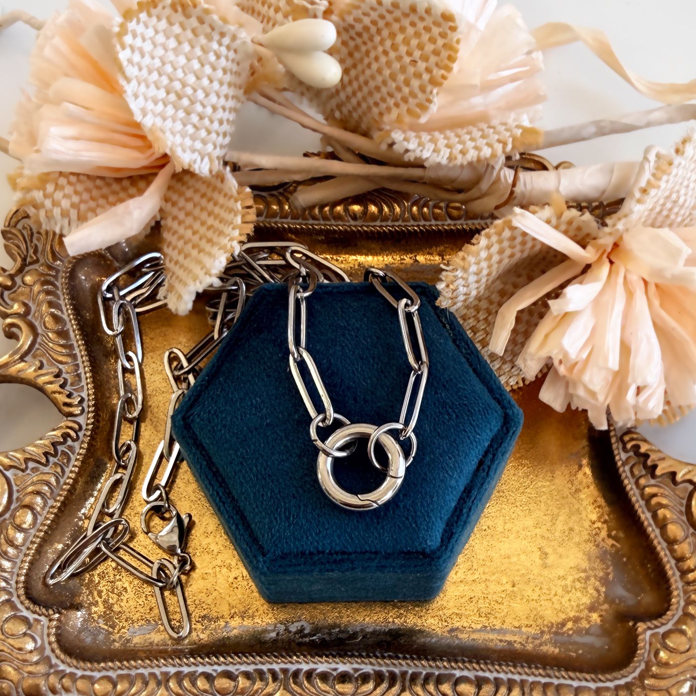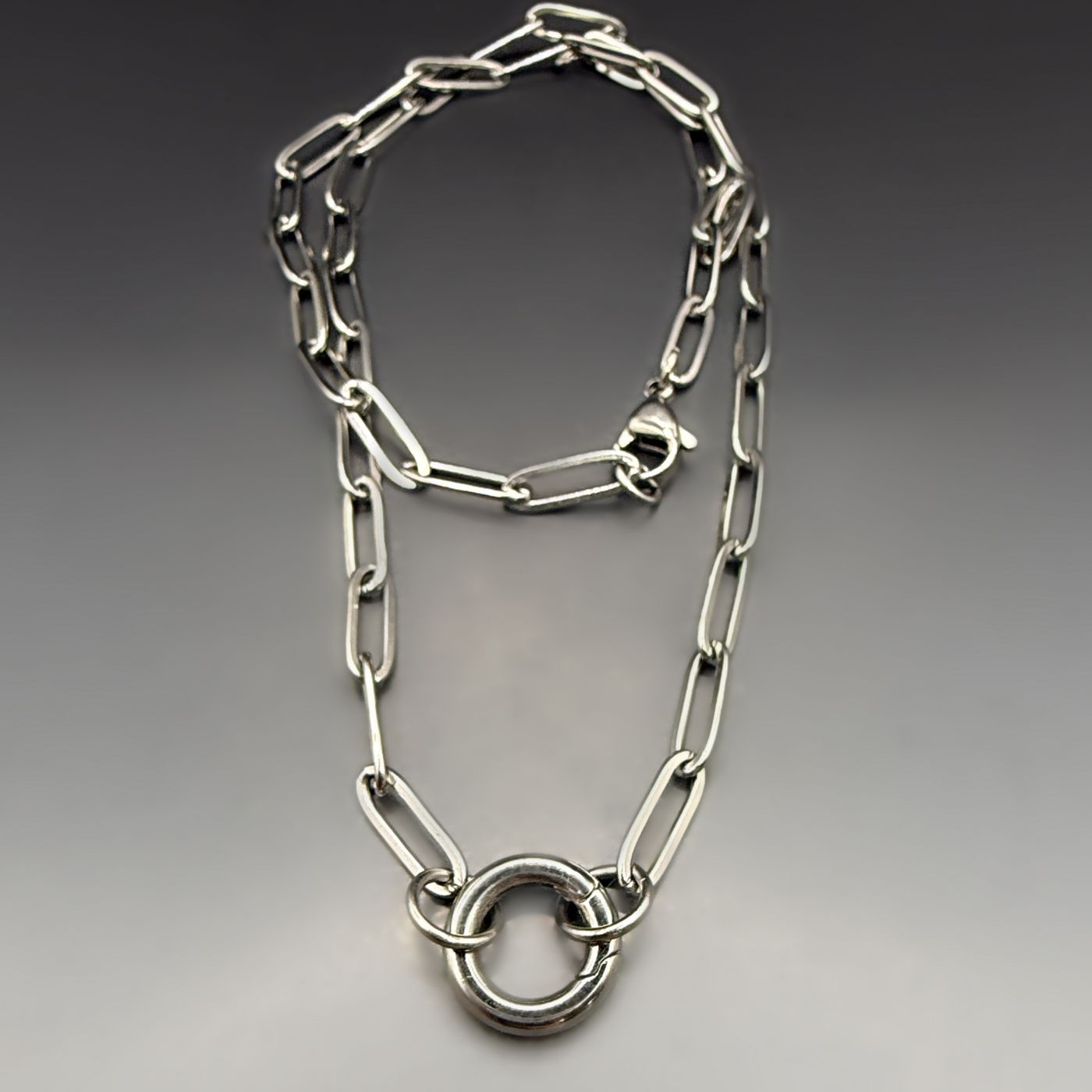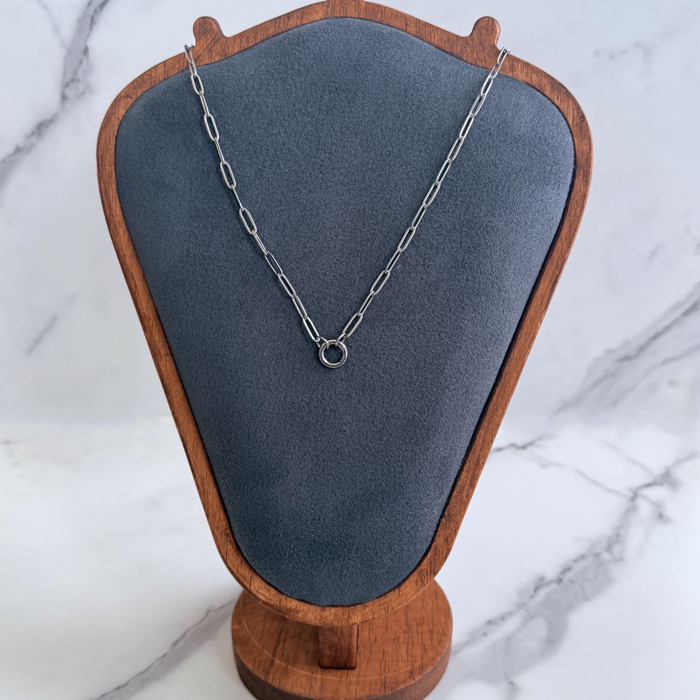 Paperclip Chain Necklace with Round Charm Holder | Stainless Steel