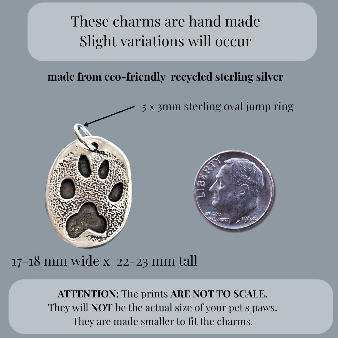 Custom Sterling Silver Pet Paw Print Charm for Dog, Cat & Pet Lover