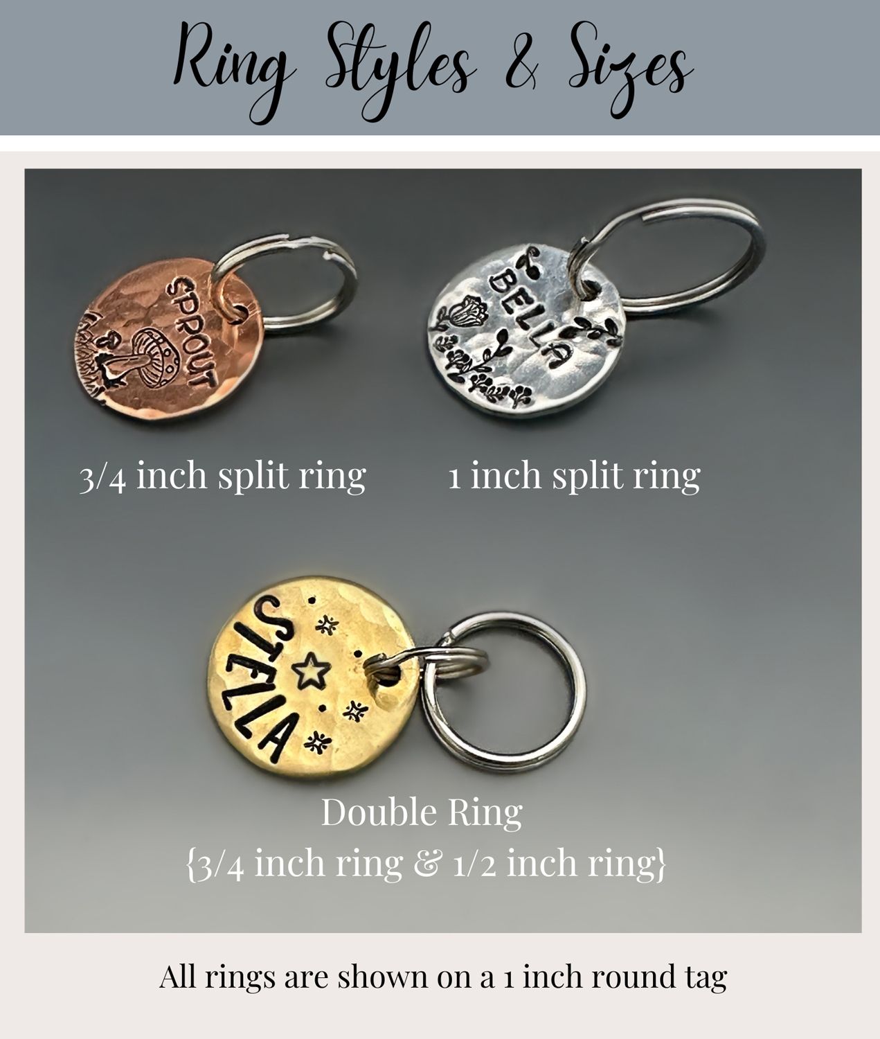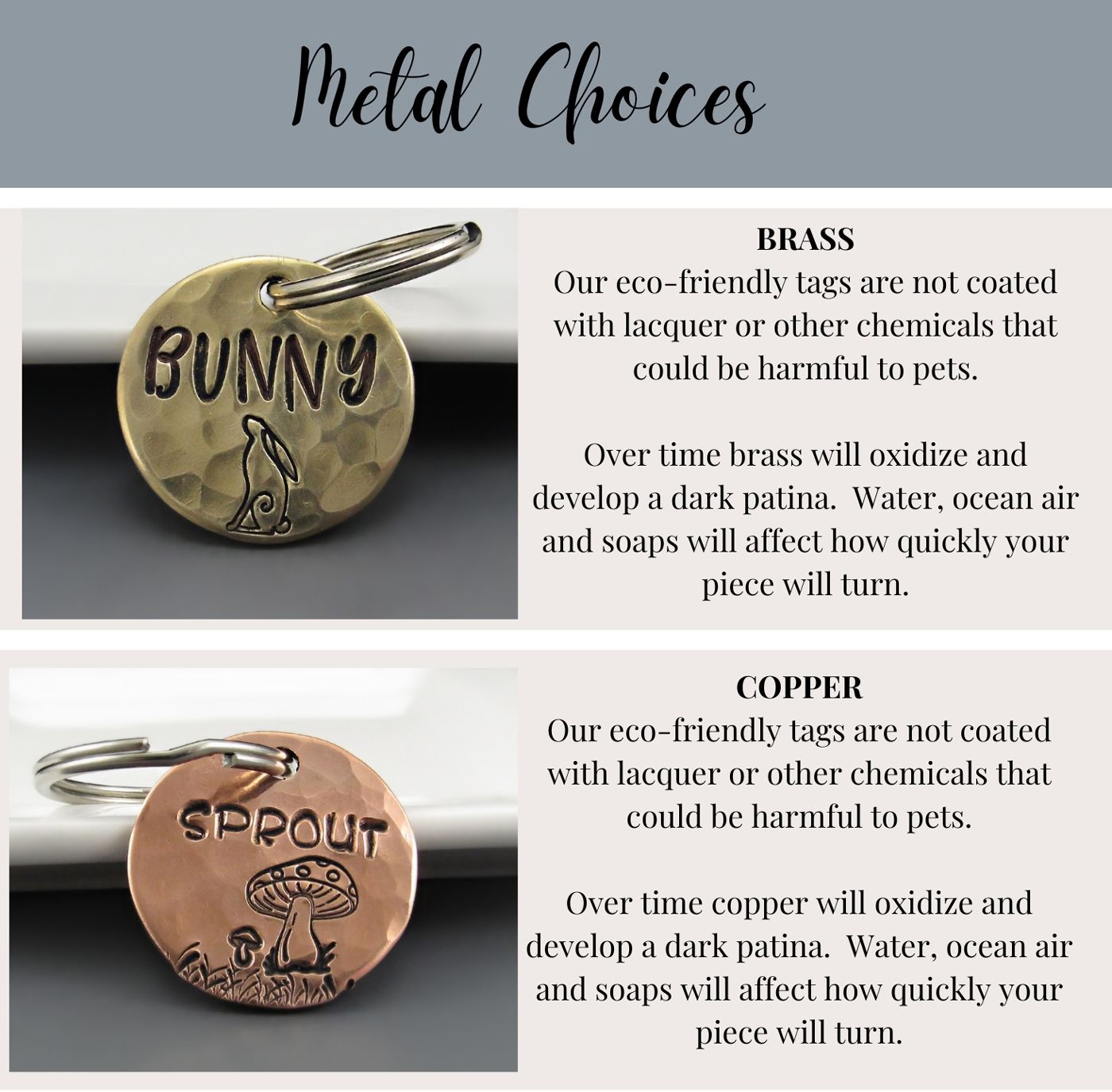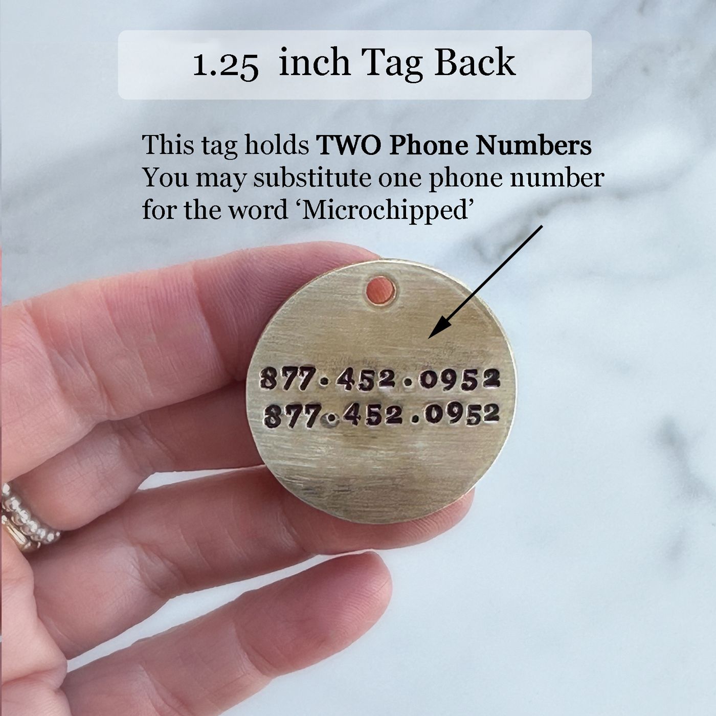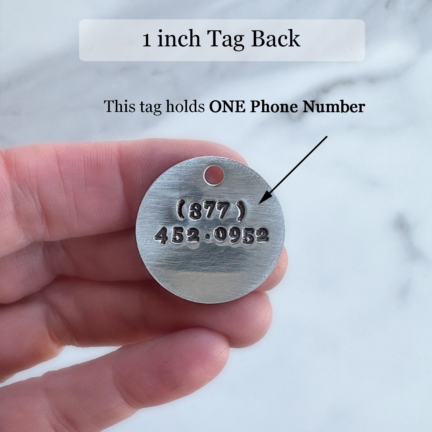 The front of the tag can be hand-stamped with your pet's name. The back offers space for up to 1 or 2 phone numbers (depending on the size), ensuring they can always find their way back to you.