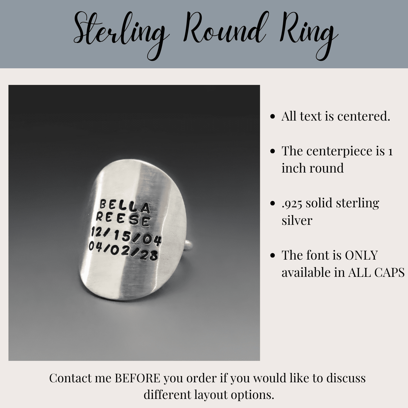 Hand Stamped Sterling Silver Round Disk Ring / Stamp Your Custom Text