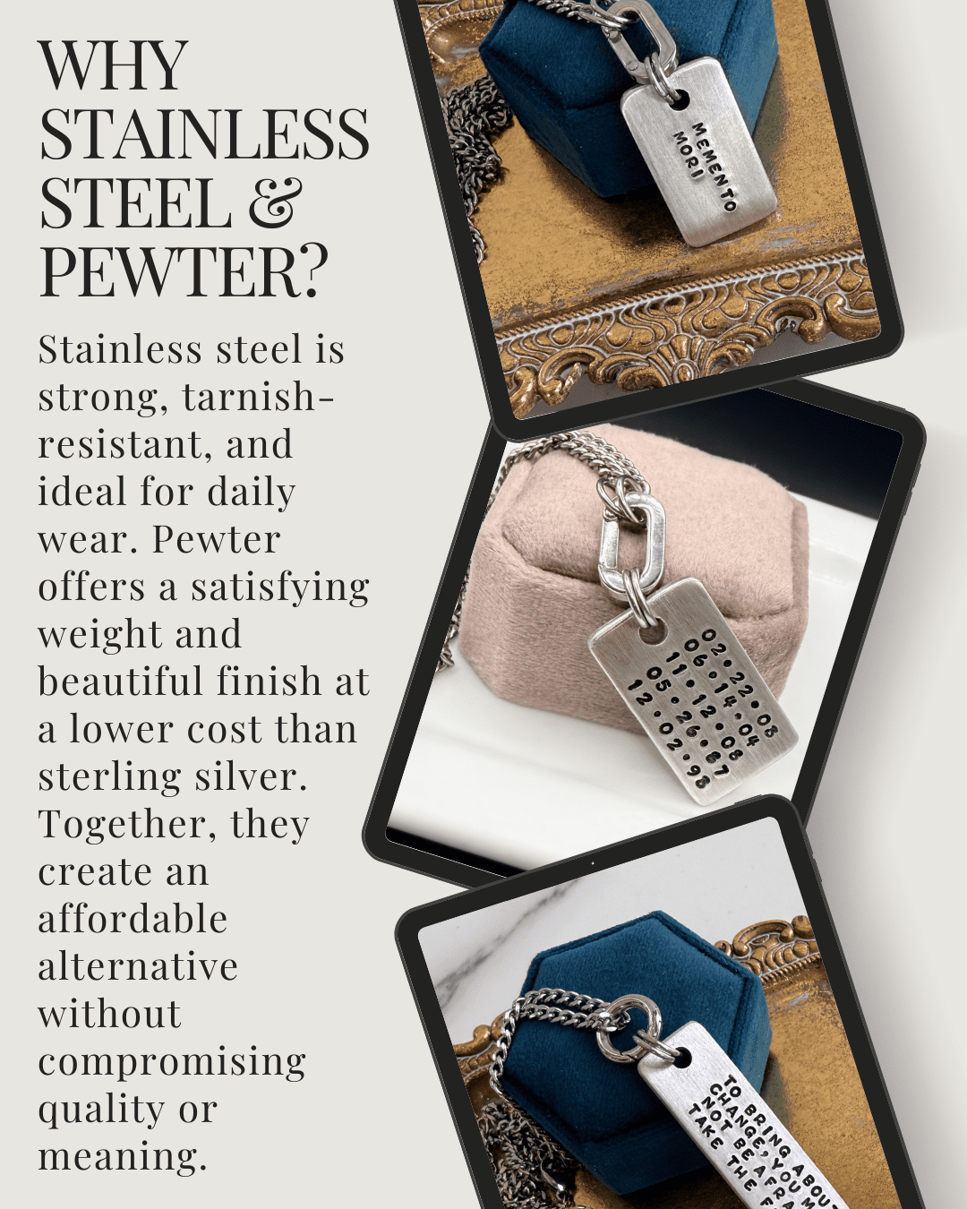Personalized Dog Tag Nekclace | Custom Pewter & Stainless Steel Jewelry