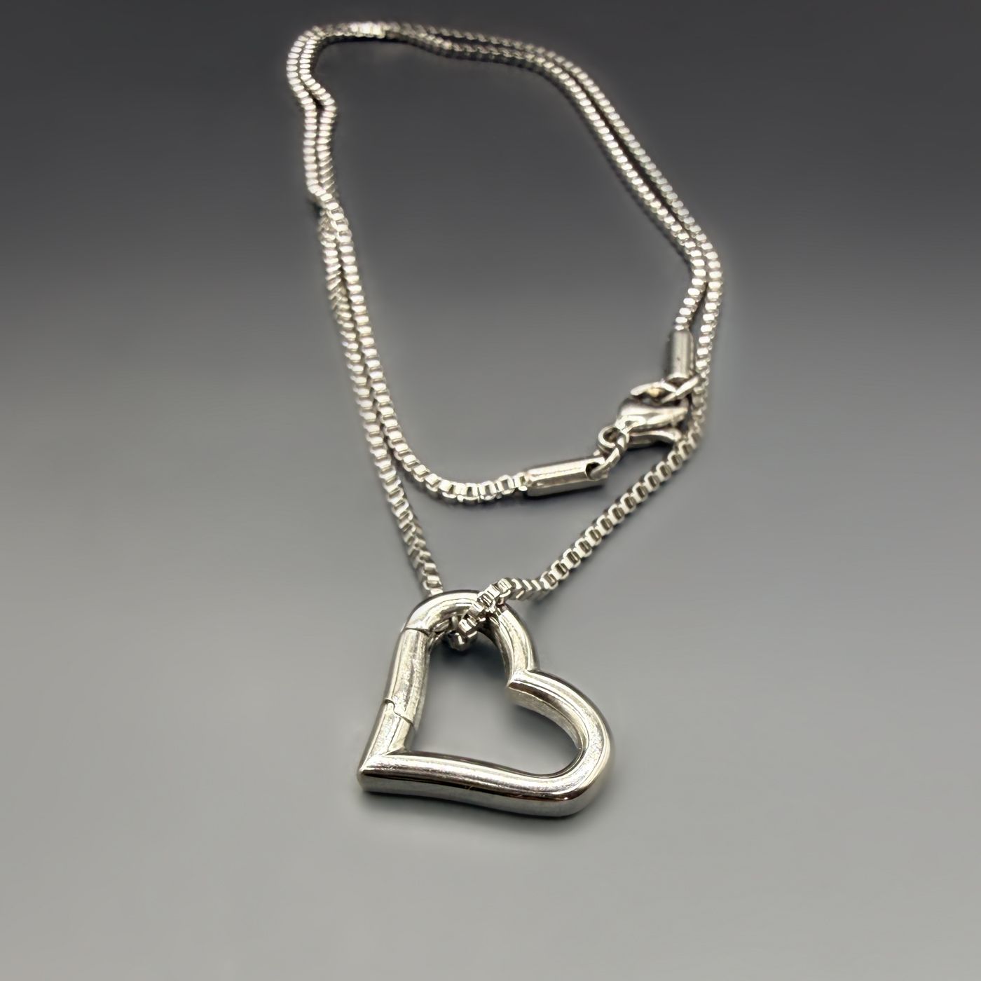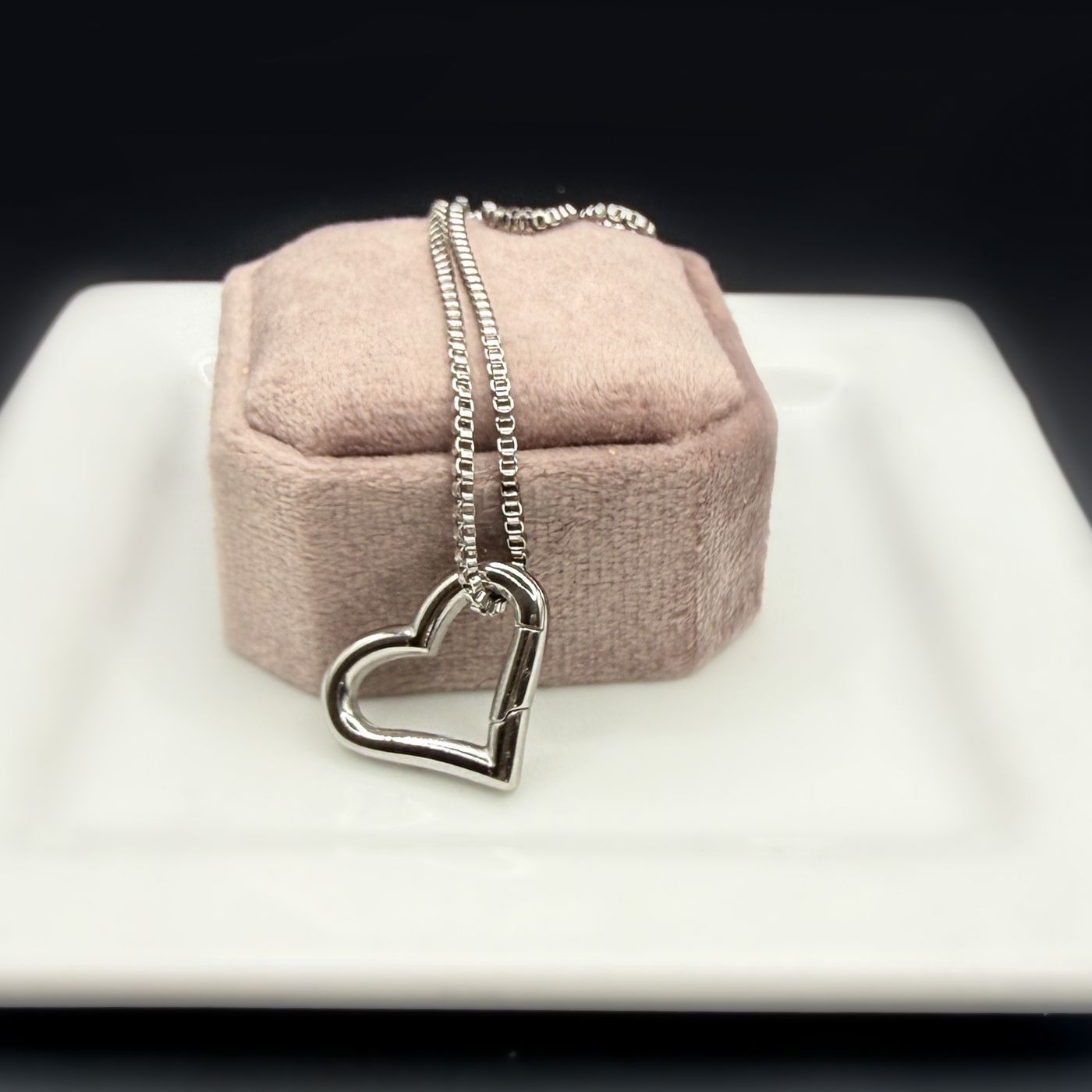 Silver Heart Charm Holder Necklace | Stainless Steel