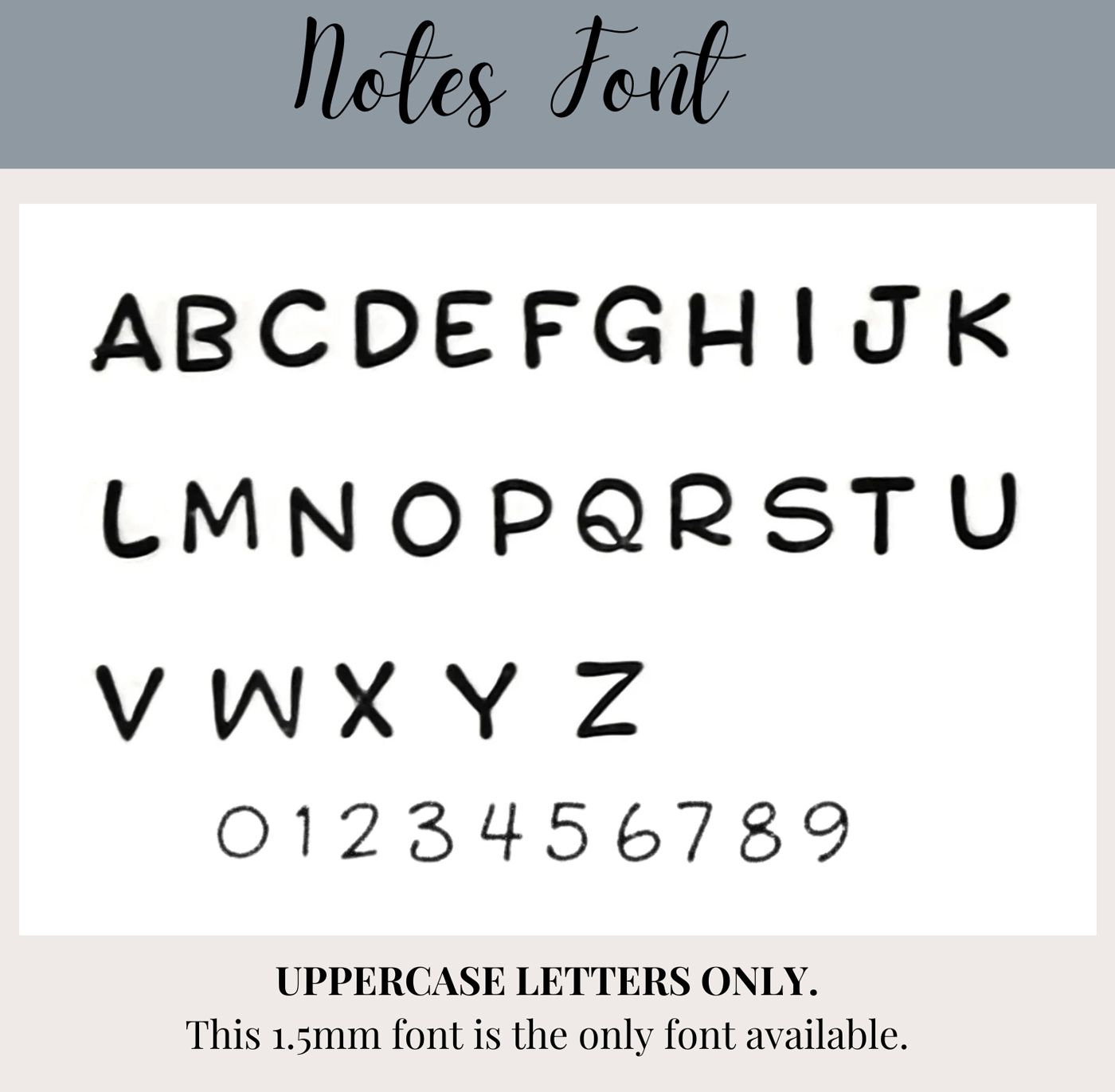 Variations in spacing and letter/number alignment will occur.