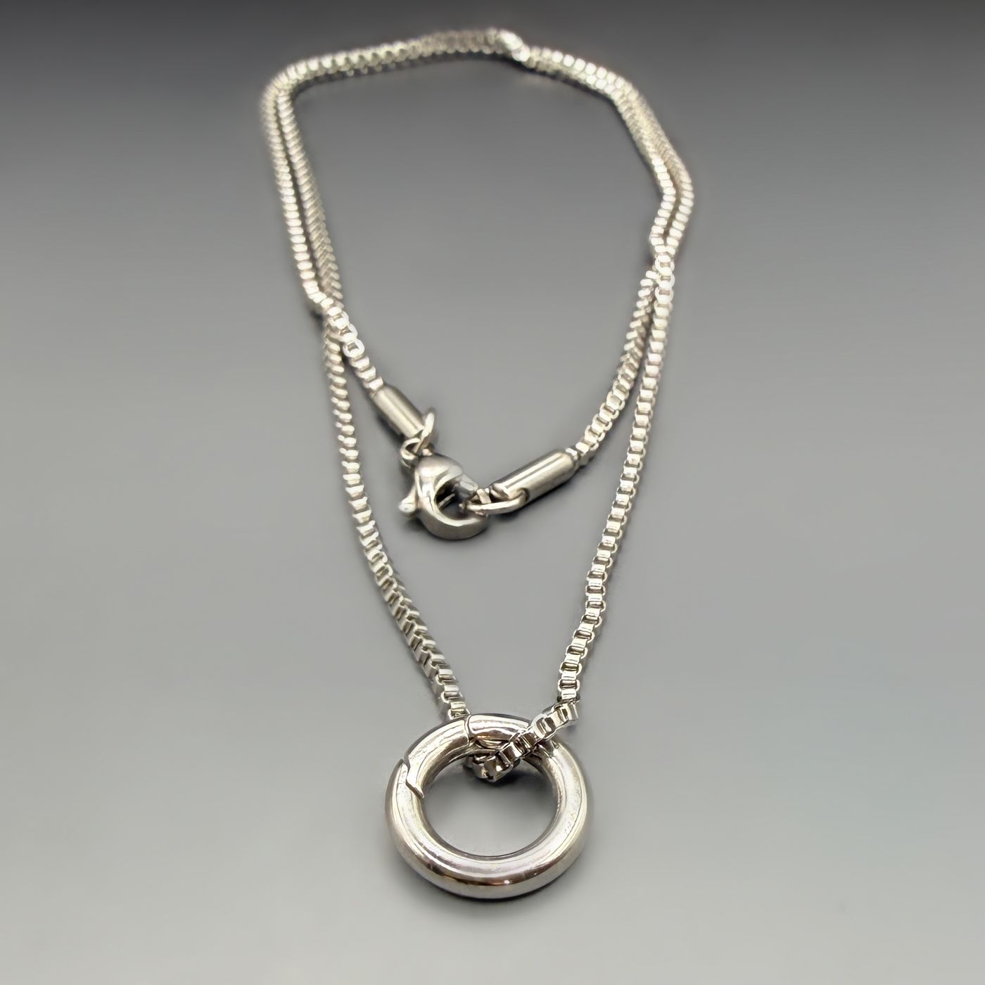 This stainless steel round charm holder neckalce is an affordable alternative to our popular Sterling Silver Option.Crafted from durable stainless steel with a beautiful round charm holder at the center, this necklace is the perfect base for building a story that is uniquely yours. Slide on meaningful charms - initials, birthstones, symbols, or tiny keepsakes - and create a one-of-a-kind piece that reflects your journey, relationships, milestones, and memories.